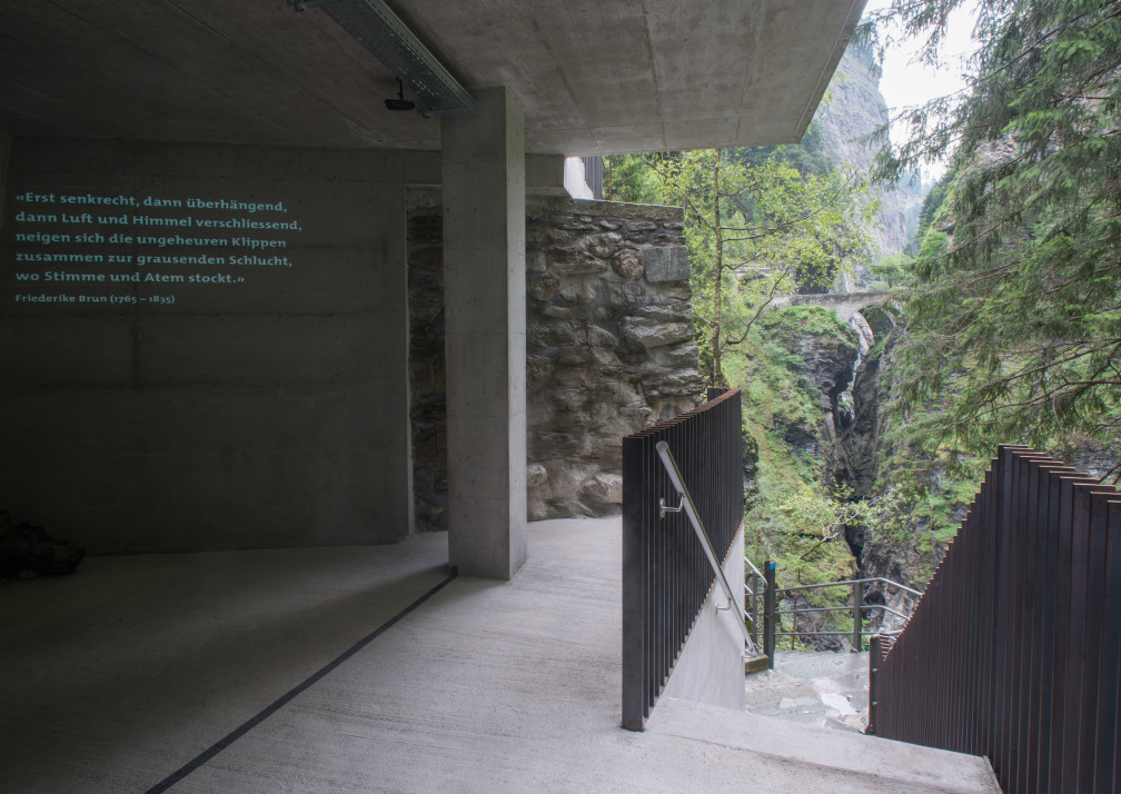 Besucherzentrum in der Viamala-Schlucht, Iseppi Kurath GmbH – Anerkennung 2017, zusammen mit Doppelbrücke (Foto: Laura Egger).