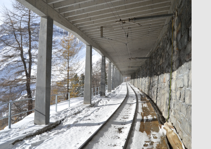 • AUSZEICHNUNG 2021  Ersatz RhB-Galerien Alp Grüm–Cavaglia von Conzett Bronzini Partner AG für die Rhätische Bahn AG, 2021 (© Gianfranco Bronzini, Chur).